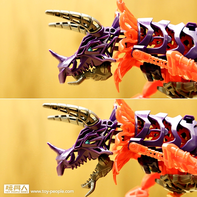 ▼ 組合完成!深紫色與螢光橘紅的配色真的超棒~ 不但極具科幻感,而且相當漂亮! 如果採用了電影中的金屬配色,一定灰濛濛一片超無聊啊~ 這配色真的太好看了,小編個人覺得恐龍金剛組配色最棒就是這組!大推薦~