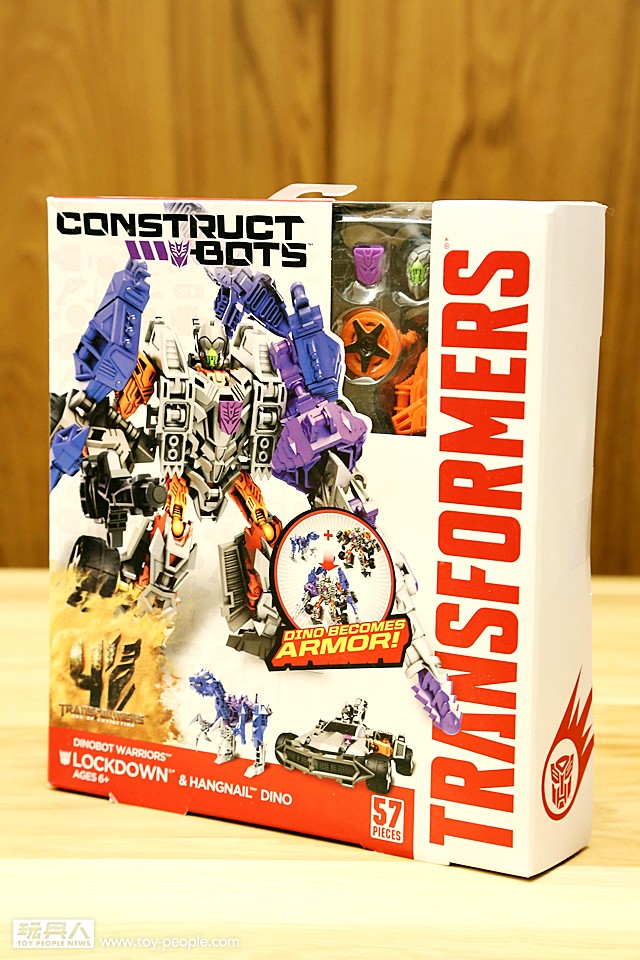 ▼ 最後介紹的是DINOBOT WARRIORS 戰士組,這也是最初登場的組合機器人系列(CONSTRUCT-BOTS)的正宗續作作品。小編這次入手的是在《變形金剛4》受到許多矚目的新角色“地獄獵人”(LOCKDOWN)。右上角的窗型設計可以看清楚積木的配色與造型質感。
