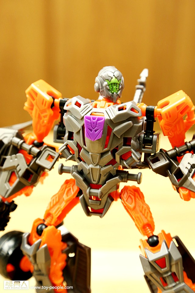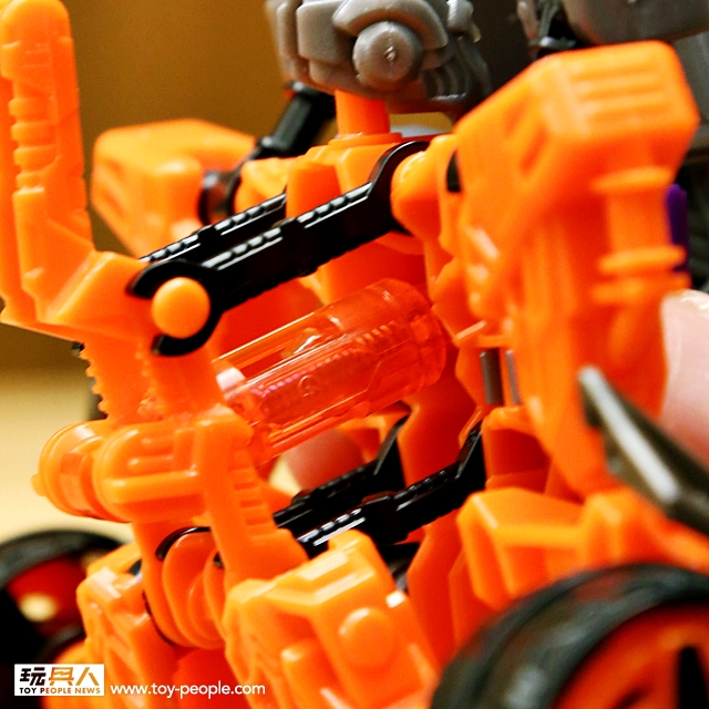 ▼ 機器人造型真是氣勢十足!尤其是採用了特殊的軟膠材質包覆於球狀關節之上,所以姿態很穩固,不容易變形、但也容易把玩! 這關節的材質一定經過了多次的測試才能設計出來,真佩服孩之寶的研發團隊。