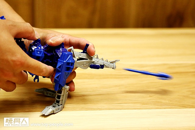 ▼ 變形為三角龍狀態的“鐵塊”(SLUG)。變形相當容易,而且機器人/恐龍型態各有造型特色,都很帥氣!