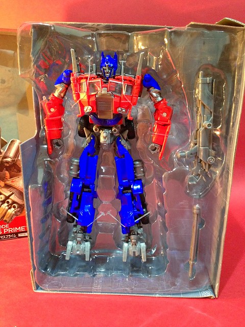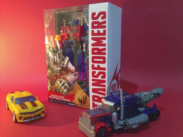 變形金剛電影版第四集上映在即。周邊的玩具商品也在五月的時候紛紛到了各位玩家的手上。我自己在電影前兩集的時候幾乎沒在收任何周邊玩具,到了第三集也才收了一些,而到了這次的第四集,目前我就已經收了三隻。所以這篇文章就是介紹我目前入手變形金剛們的開箱文。在預購期間有參與到的就是這隻,也是第四集系列我入手的第一隻:
