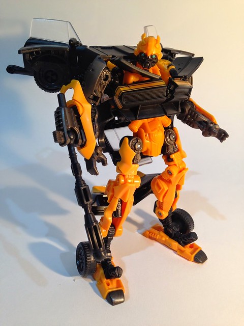 接下來,在逛美麗華的時候,看到他們櫥窗展示了幾乎所有這次的玩具。當中看到了復古車型的大黃蜂,機器人形比我之前看到demo圖片好蠻多的。於是立馬敗了一隻回家。