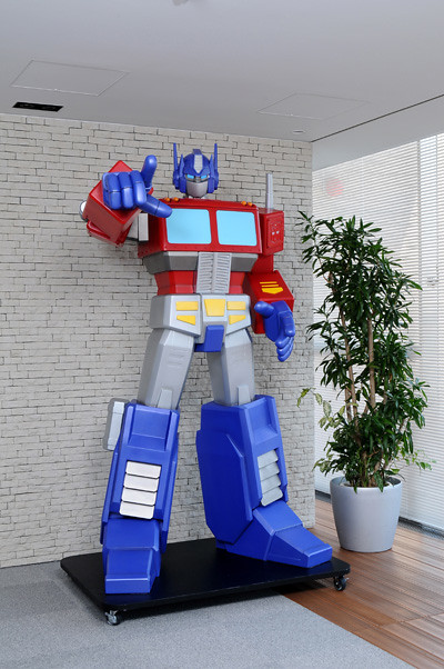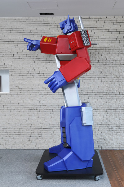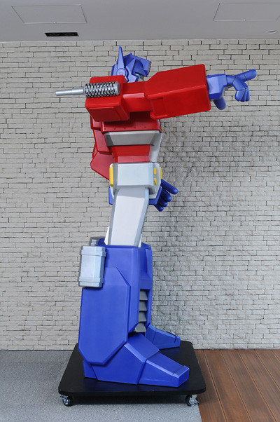 另一方面,日本玩具廠商TAKARA TOMY 為了慶祝「變形金剛30週年」,推出了G1 系列初代總司令官柯博文!(初代総司令官コンボイ)。這一款作品,採用了經典的G1 動畫版造型、FRP材質製作,全高約2公尺,並需要兩位大人協力組裝(參考時間約45分鐘)。有別於複雜絢麗的好萊塢版本,簡單造型的經典線條充滿了回憶啊!~~~
