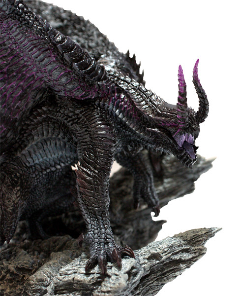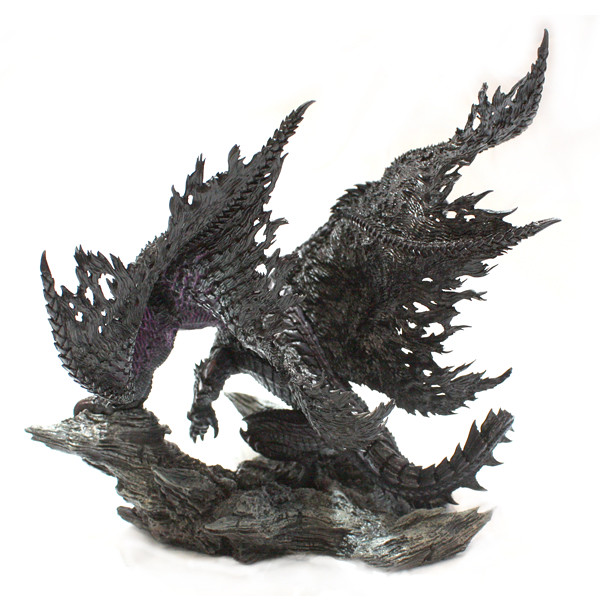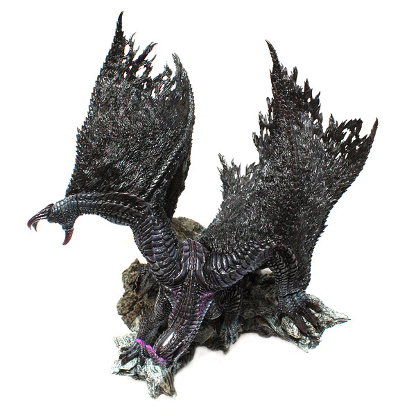 魔物獵人4招牌魔物黑蝕龍終於登上CFB雕像系列!作品採用了黑蝕龍狂龍化狀態設計,頭部出現雙角並展現六腳全力迎戰之姿,動作十分有張力。翅膀、鱗片非常複雜細緻,可以感受製作相當費心。岩石地台材質與黑蝕龍形貌相當融合,整體作品完成度極高,非常推薦給本遊戲狂熱者蒐藏。作品尺寸約H20.5×W23.5×D22公分,售價為8800日圓,預計9月底推出提供給各位獵人參考~