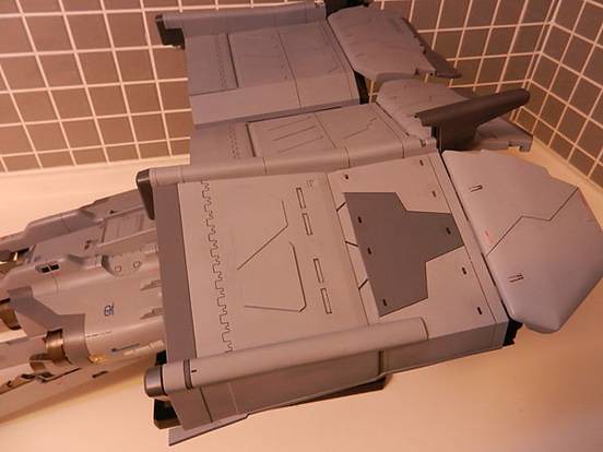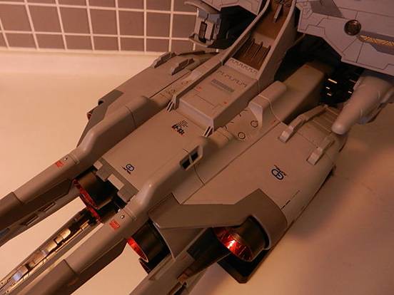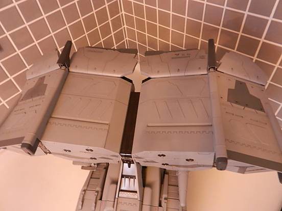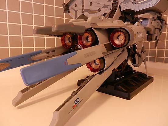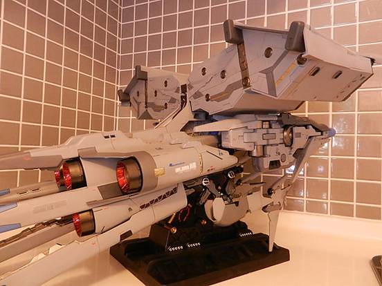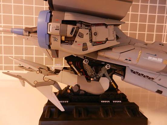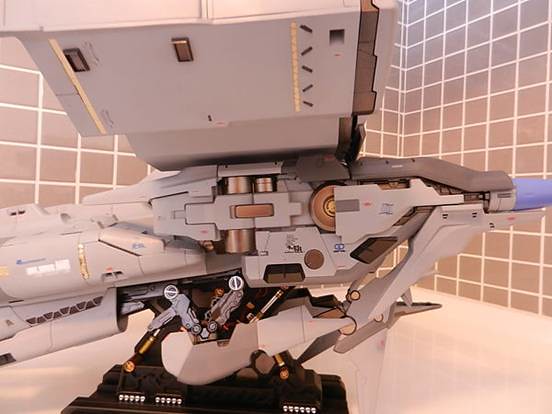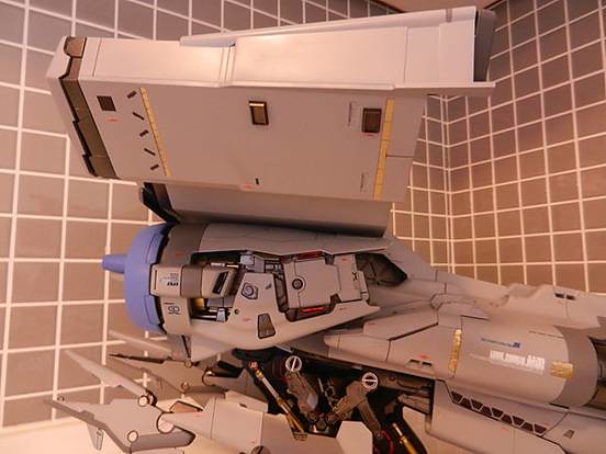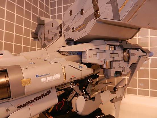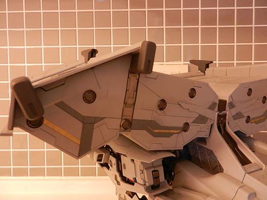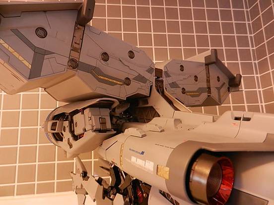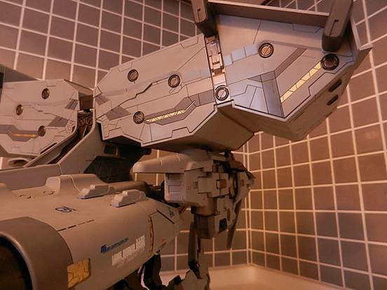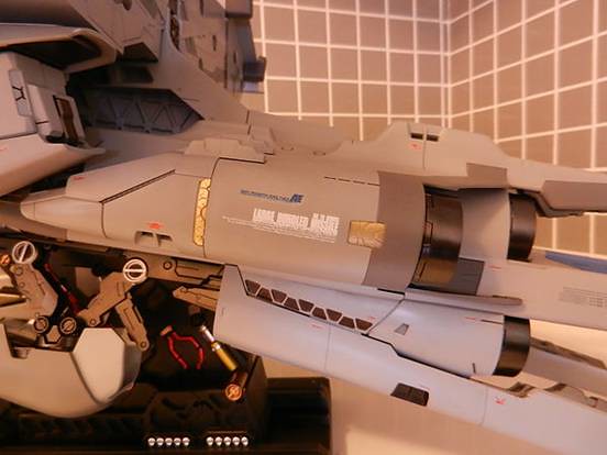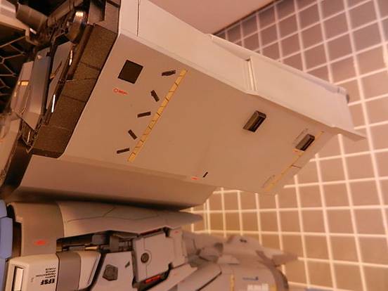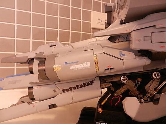 那兩個排氣孔是我自已加上去的。原本它只是鎖螺絲的孔,靈機一動直接在那邊貼上排氣孔,想像成武器夾如果發射飛彈後需要排出艙內的高溫氣體用。