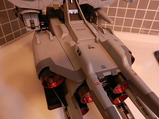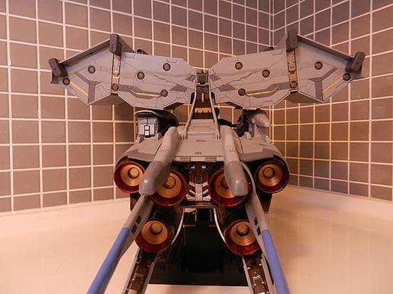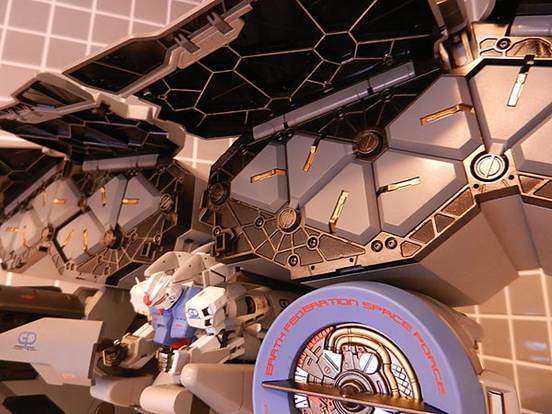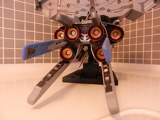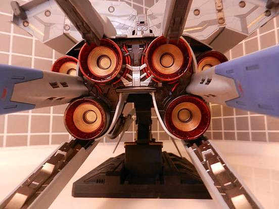 在這麼大的推進器孔怎麼可以就只用黑鐵色而已呢?於是用內圈金色、外圈金屬紅、外圍黑鐵色去配色。