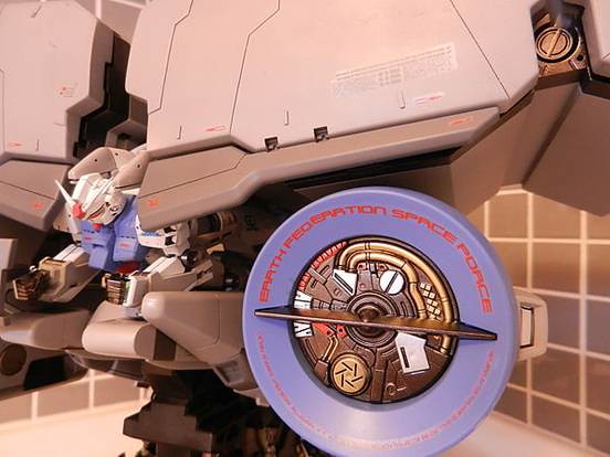 米諾夫斯基粒子發射器 (應該沒錯吧!) 因為有兩面 ,於是設計一面花俏、另一面樸素。