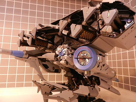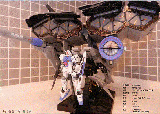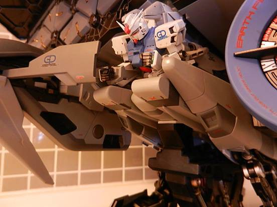 本體是白色的GP-03S在灰色的外裝甲中 顯得很特別!!