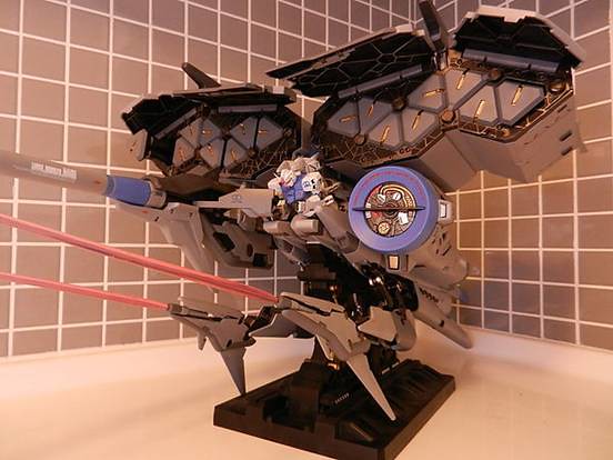 當初跟委託人就已經事先講好要做出類似RG風格的配色,因為s的身上有些藍的配色,所以在d的身上也選了一些部分換上藍色來互相輝映。再來是我個人喜歡粉色系,所以就用了粉藍跟粉紅色來做主體的配色。值得一提的是因為這套件有點年代了,不管是分色或是分件都很不優,都需要動點腦筋來處理 。