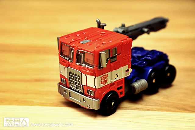 即便是舊款卡車的造型,柯博文帥氣依舊啊!~ 玩具採用了各位變形金剛粉絲熟悉的經典紅藍配色,有興趣的玩具人可以自行舊化,一定會變的更加具有氣勢!