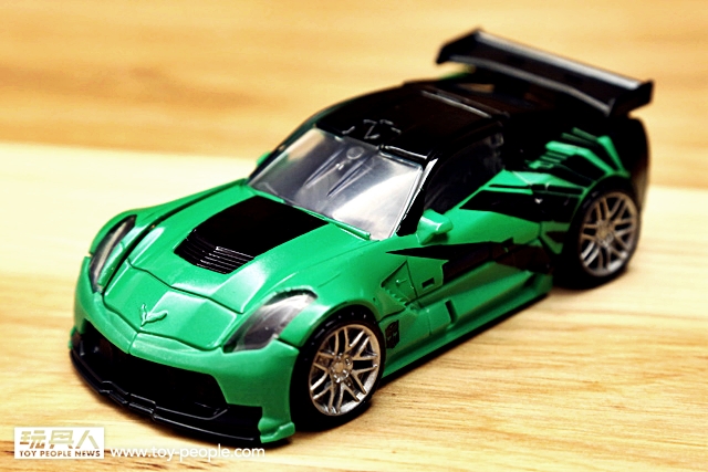 ▼ “準星”(Crosshairs)的載具型態是雪佛蘭Corvette Stingray 跑車。帥氣的跑車造型完全重現~ 據說導演麥可貝考慮《變形金剛5》讓演員巨石強森登場,也要讓他開跑車來「玩命光頭」一下嗎?(笑)