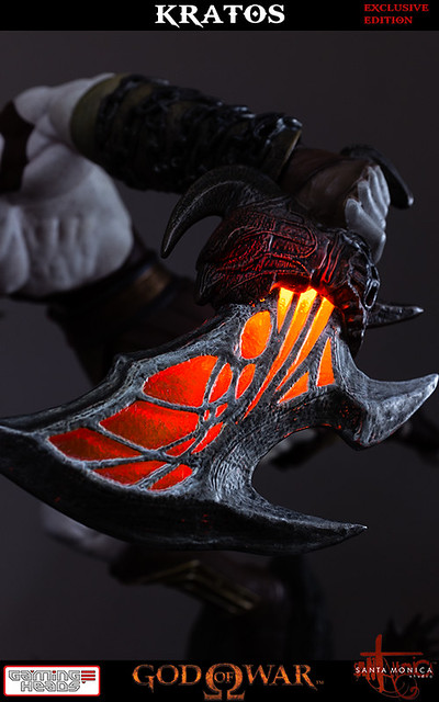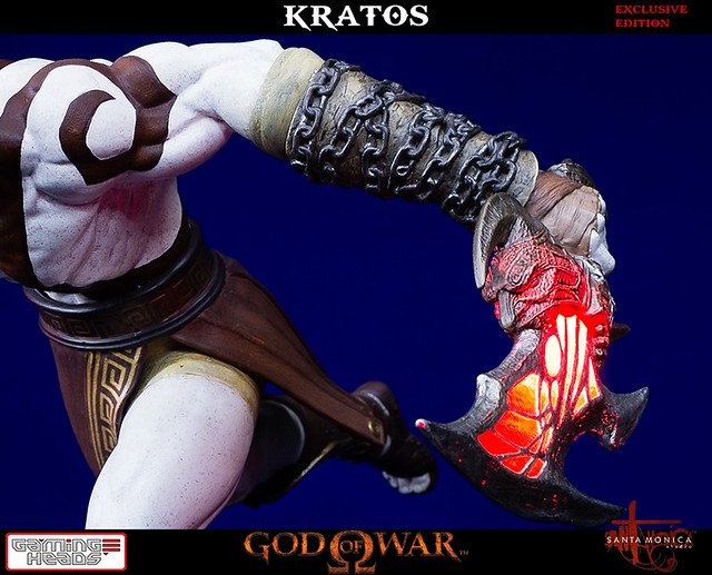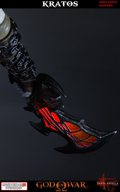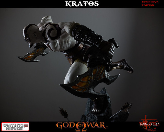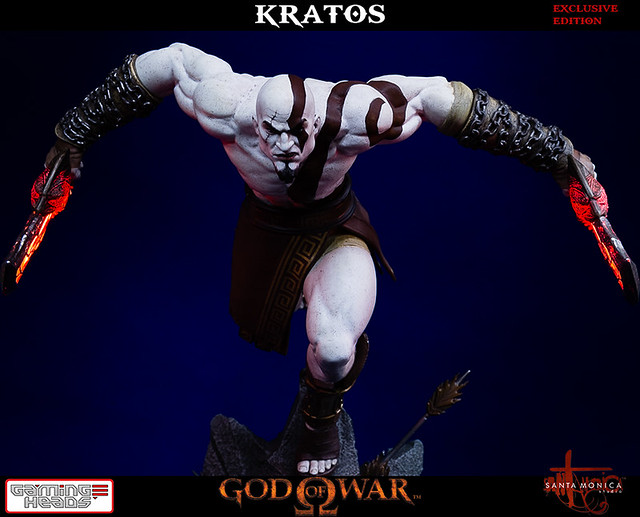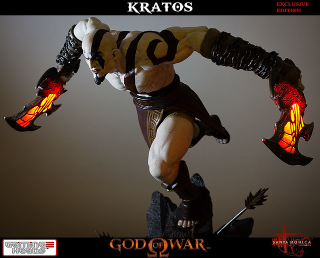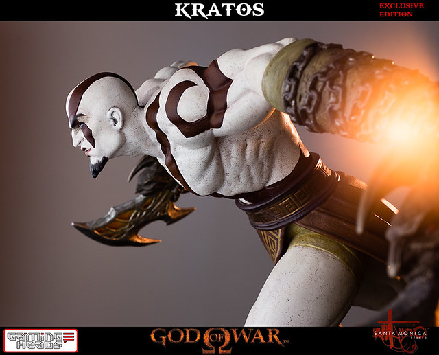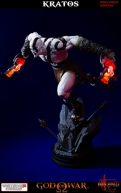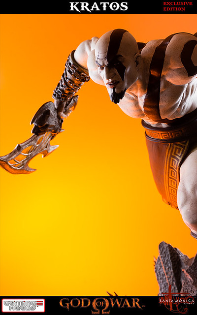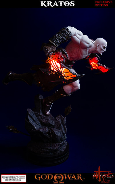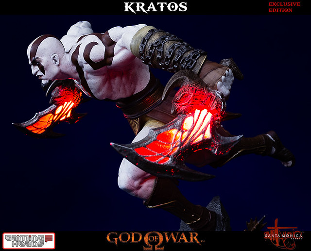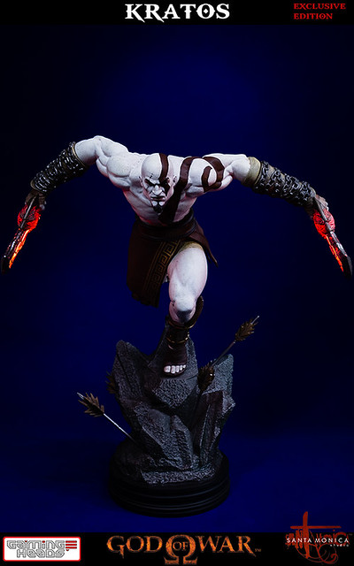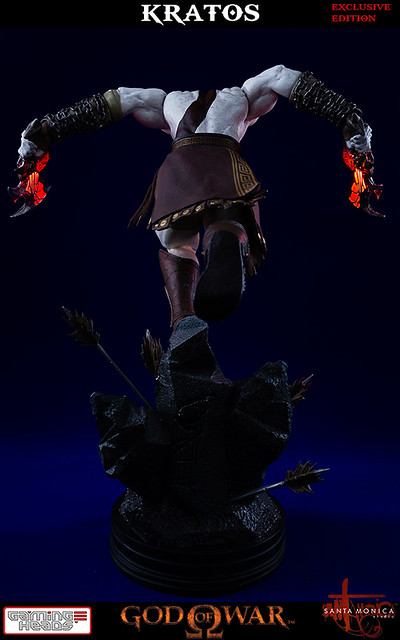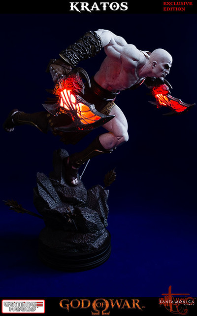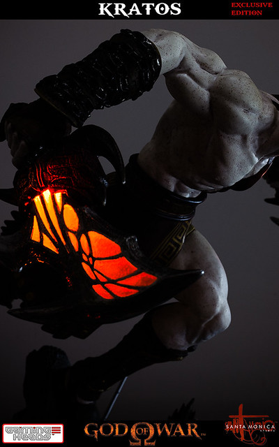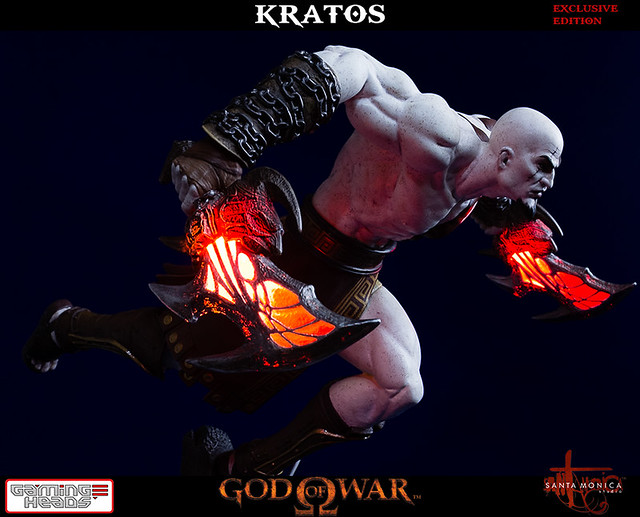 SONY遊戲招牌大作GOD OF WAR主角奎多斯再次被GAMING HEADS立體化。奎多斯因為被眾神利用、背叛而步向殺戮輪迴的不歸路,為了向眾神復仇,奎多斯燃起復仇火焰向眾神宣戰。先前GAMING HEADS曾推出1:1胸像,但這次卻是1/4比例的全身戰鬥英姿(約19英吋)。作品中奎多斯呈現經典的曲身俯衝攻擊架勢,憤怒堅毅的復仇神情相當傳神。另外雙手的混沌之刃製作十分細緻,特別設計了發光特效,可以在發光時光影由紅轉黃,關閉時,再慢慢由黃轉紅,十分酷炫,也添加了作品的魔幻魅力。奎多斯被怨靈纏繞的蒼白皮膚質感相當生動,岩石地台上還有幾支弓箭,看起來就像他正在奮戰殺敵。本作品全球限量500尊,美金訂價349.99美元,預定2015年第一季推出,提供大家參考!