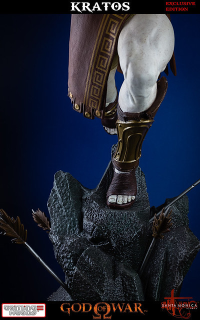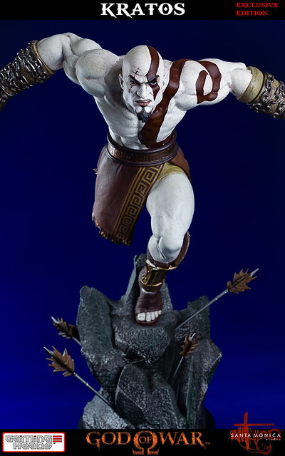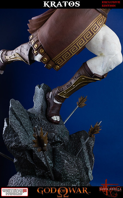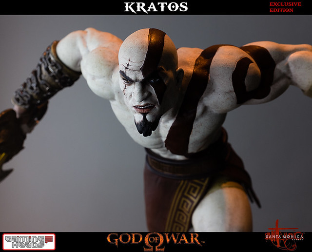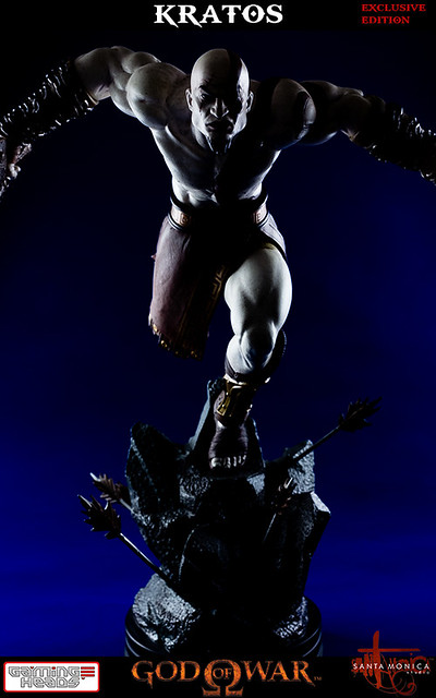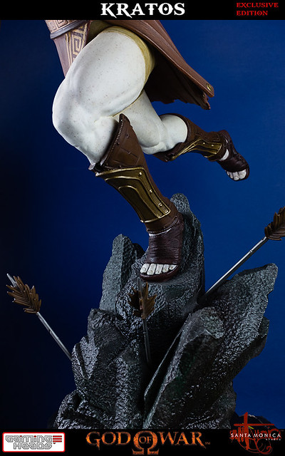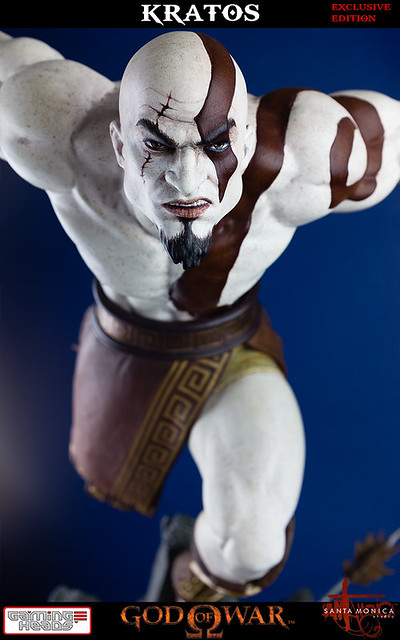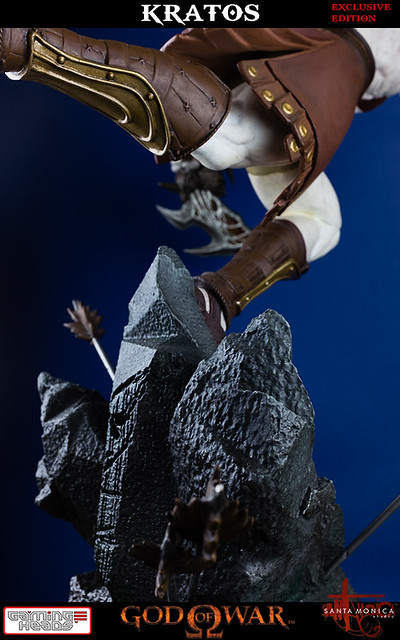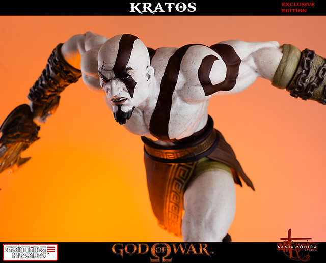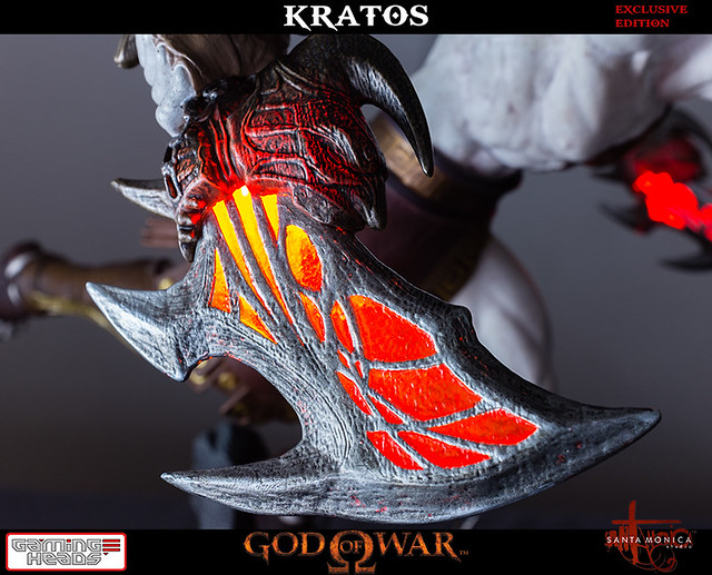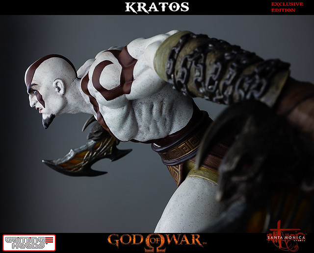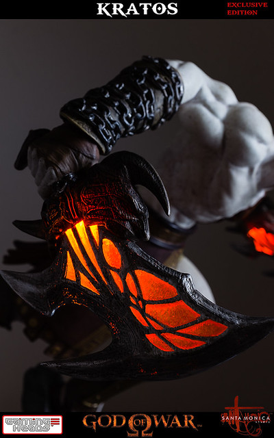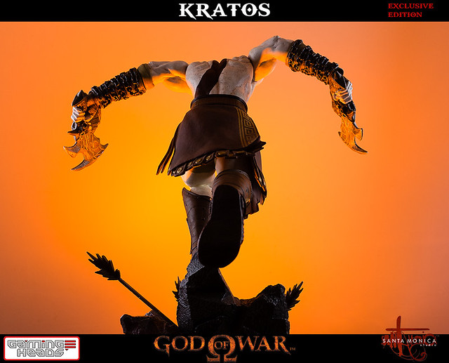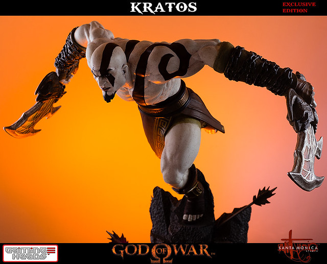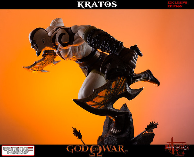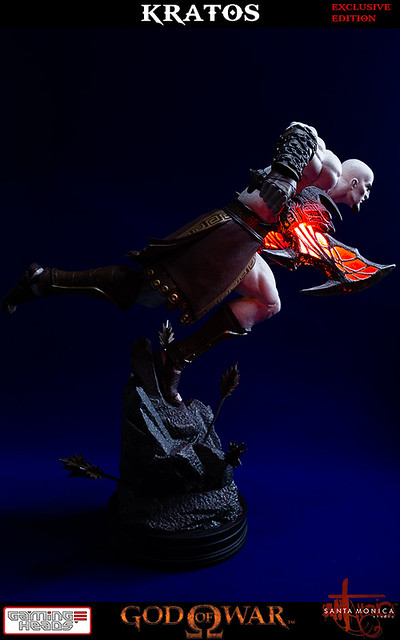 SONY遊戲招牌大作GOD OF WAR主角奎多斯再次被GAMING HEADS立體化。奎多斯因為被眾神利用、背叛而步向殺戮輪迴的不歸路,為了向眾神復仇,奎多斯燃起復仇火焰向眾神宣戰。先前GAMING HEADS曾推出1:1胸像,但這次卻是1/4比例的全身戰鬥英姿(約19英吋)。作品中奎多斯呈現經典的曲身俯衝攻擊架勢,憤怒堅毅的復仇神情相當傳神。另外雙手的混沌之刃製作十分細緻,特別設計了發光特效,可以在發光時光影由紅轉黃,關閉時,再慢慢由黃轉紅,十分酷炫,也添加了作品的魔幻魅力。奎多斯被怨靈纏繞的蒼白皮膚質感相當生動,岩石地台上還有幾支弓箭,看起來就像他正在奮戰殺敵。本作品全球限量500尊,美金訂價349.99美元,預定2015年第一季推出,提供大家參考!