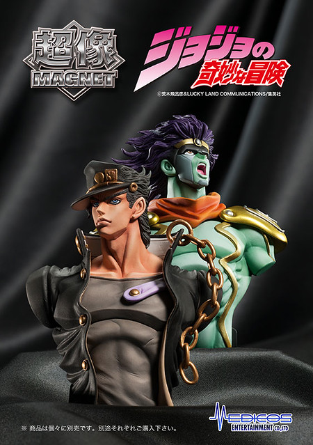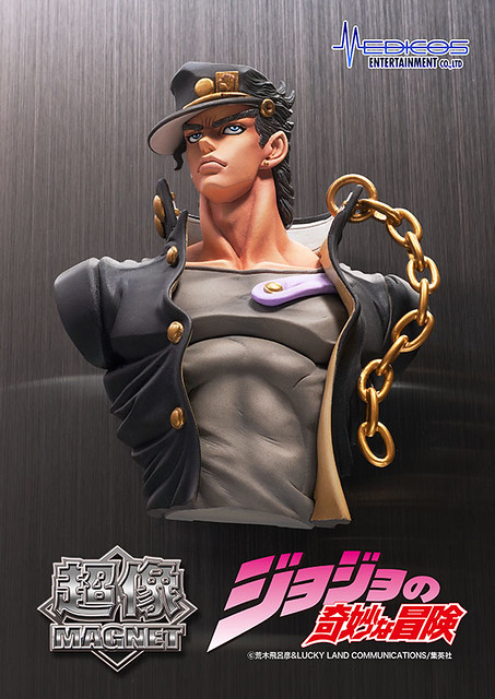 大人氣奇幻冒險漫畫JOJO冒險野郎,新企畫超像磁鐵(超像マグネット)繼白金之星後,再推出第2彈「空条承太郎」。超像磁鐵採用了藝術式胸像的形式立體化這些人氣角色,讓作品呈現出崇高的蒐藏魅力。台座機關設計可以直立蒐藏,也可以轉換方向吸附牆壁,具有靈活多樣的展示特性。另外因為作品的焦點在角色的面貌,所以神韻再現相當完美,非常令人讚嘆!本作品高約8公分,日幣售價2800日圓,預計9月下旬推出,提供大家參考!