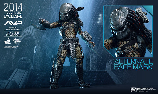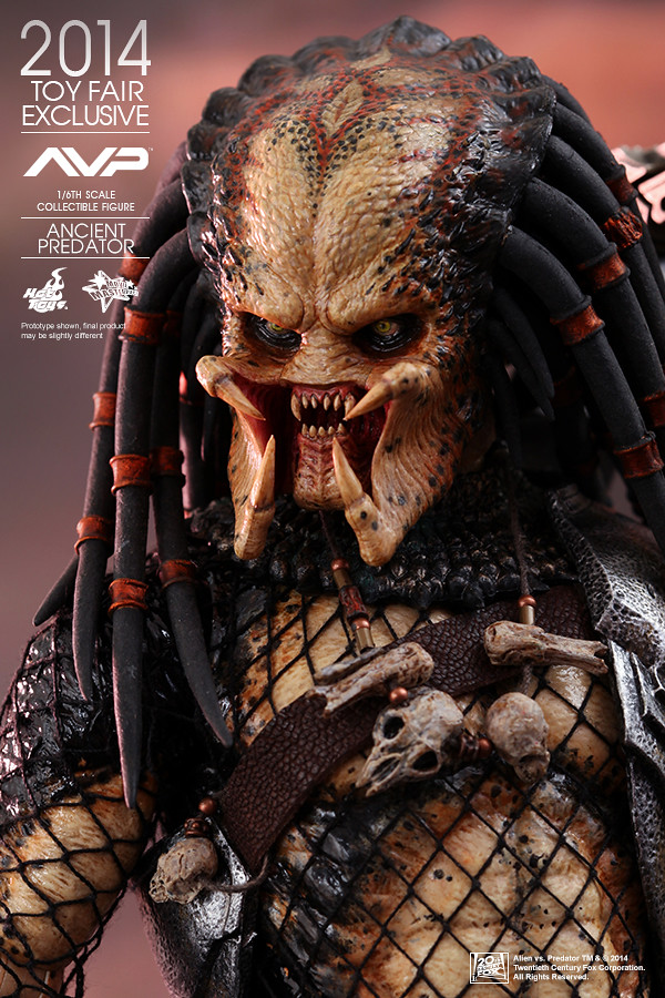 好久不見的終極戰士作品,Hot Toy 2014 年度展推出的第三款作品是電影「異形戰場」(Alien vs. Predator)中的「遠古終極戰士」(Ancient Predator )。這次要推出的終極戰士作品,其角色主要是屬於終極戰士中指揮官的角色,其很喜歡收集獵物的頭,並將其獵物的頭砍下作為戰利品。而在電影異形戰場也有許多類似的場景出現。