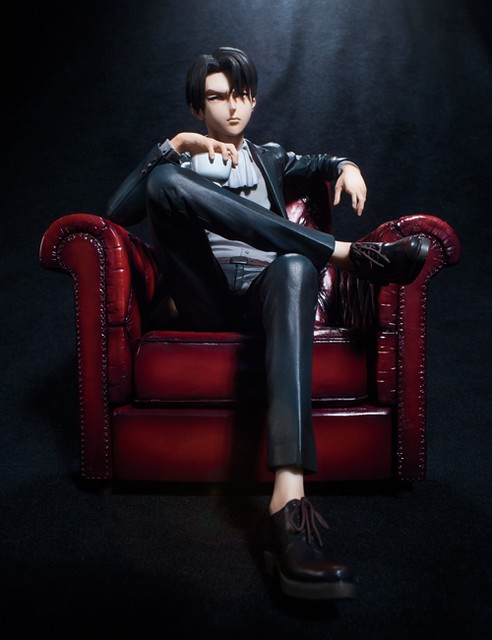 人氣漫畫「進擊的巨人」累計銷售已經突破3千萬本,其中角色兵長里維人氣始終居高不下,周邊商品狂出氣勢完全壓過男主角啊!近日UNION CREATIVE旗下的mensHdge technical statue 系列宣佈推出兵長里維,特別的是里維是以私服現身,屌屌地坐在貴氣的沙發上,散發著壞男孩的致命吸引力。作品分成一般版與DX版兩種,一般版是紅色沙發,但DX除了是黑色沙發外,也有替換配件可以切換成里維扯開衣領、斜視發言的高傲姿態,如何抉擇真是考驗漫迷的口袋深度啊!本作品採用動畫版人物設定師淺野恭司先生所繪製的草圖設計,原型師則是円応文彦先生。尺寸約16公分高,日幣售價16500日圓,預計2014年11月推出,提供給大家參考!