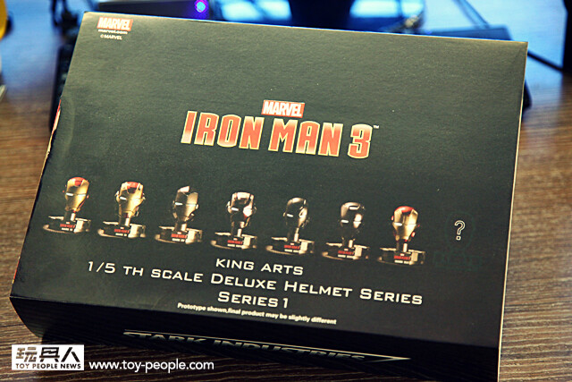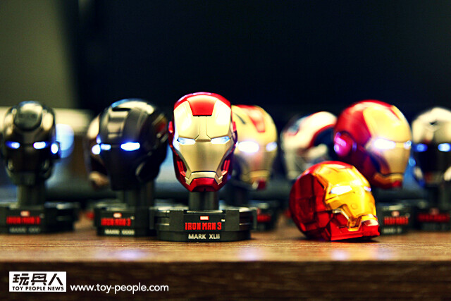 來自香港的「King Arts」公司(King Arts International Limited)2013 年成立至今,拿下了Disney Marvel 多部電影與漫畫授權,研發生產多款的作品。其中,備受注目的就是「1/5 比例豪華頭盔系列」的作品了。一次推出了八款的電影鋼鐵人3 中不同型號的鋼鐵人頭盔:馬克3、馬克11、馬克15、馬克24、馬克25、馬克32、馬克42、鋼鐵愛國者以及特別版的頭盔作品。