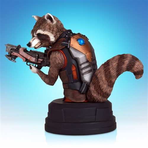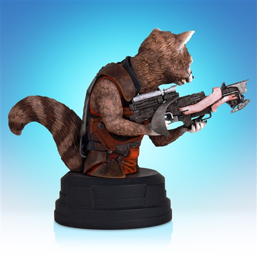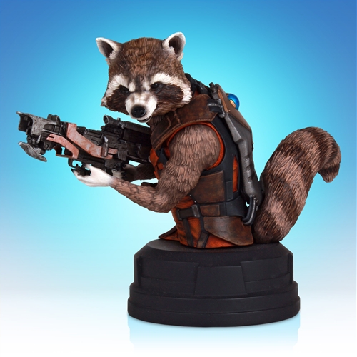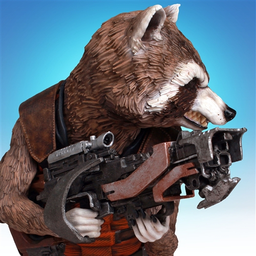 星際異攻隊(The Guardians of the Galaxy)未演先轟動!預告裡的火箭浣熊是高智商的基因改造動物,本來負責監督外星球上的精神病患。因為是武器、戰略、格鬥專家,加上可愛的外型與暴力的性格形成話題特色,已經陸續推出許多周邊商品。近日Gentle Giant又宣佈將推出火箭浣熊迷你半身像,而且還是2014年SDCC的限定版喔!採用電影裡的造型,火箭浣熊細緻的毛皮栩栩如生,疵牙咧嘴的兇狠模樣帥氣有型,十分有戲劇張力!