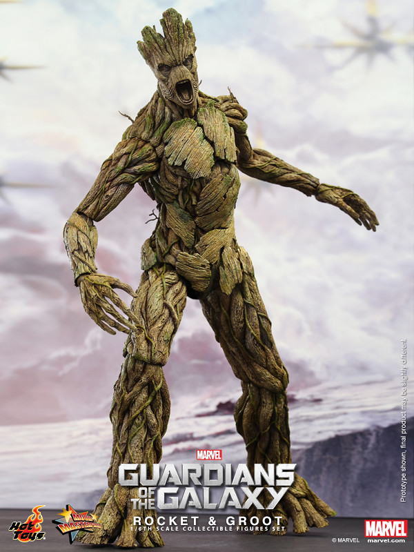 Hot Toys 所推出的1/6 比例《星際異攻隊》系列作品,除了MMS 252 火箭浣熊 & MMS 253 樹精「格魯特」單獨發行之外,也將推出這兩位好搭檔套裝組合的版本。這一個套裝版本,除了收錄了火箭浣熊與樹精「格魯特」之外,作為套裝版還將追加一款「格魯特」發怒的特殊頭雕與一對手部替換零件。