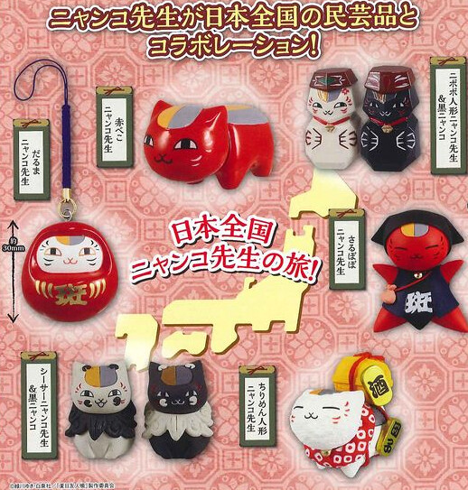 預定8月,日本TAKARA TOMY將推出貓咪老師與日本民藝聯名企畫(夏目友人帳ニャンコ先生meets日本の民芸)。人氣漫畫妖怪聯絡簿裡的人氣妖怪貓咪老師將化成各種日本民藝作品,出乎意料的造型相當討喜,共有「ニポポ人形ニャンコ先生&黒ニャンコ」、「赤べこニャンコ先生」、「だるまニャンコ先生」、「さるぼぼニャンコ先生」、「ちりめん人形ニャンコ先生」、「シーサーニャンコ先生&黒ニャンコ」六種,每款日幣售價200日圓,提供給大家參考喔!