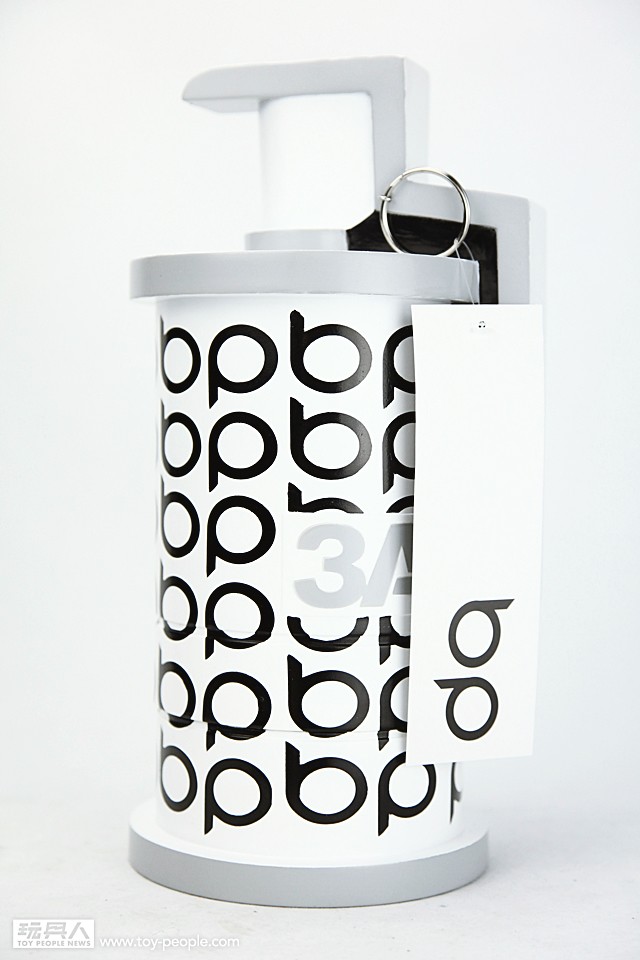 ▼ 吊卡的背面設計也絲毫地不馬虎喔!而手榴彈整體的配色採用灰色與白色的搭配,並且印上黑色的「bp」LOGO 字體。此外,更在多個bp 字體中融入了灰色的3A LOGO,小編只能說這絕對是時尚與典雅的設計結合啊!