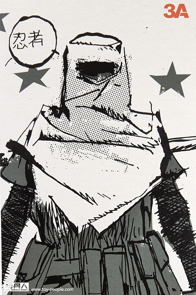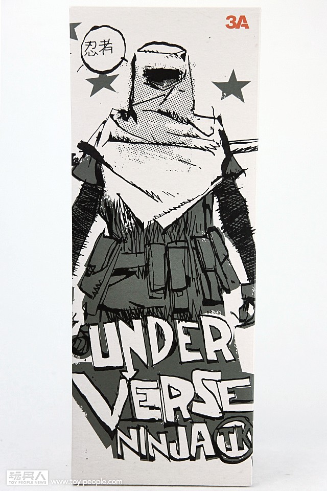 包裝盒正面是採用設計師Ashley Wood 手繪的「忍者TK」圖案,小編蠻納悶的是,中文字體「忍者」兩個字也是Ash 親手寫的嗎?!戴著頭套的感覺真的如同忍者般的神秘啊!