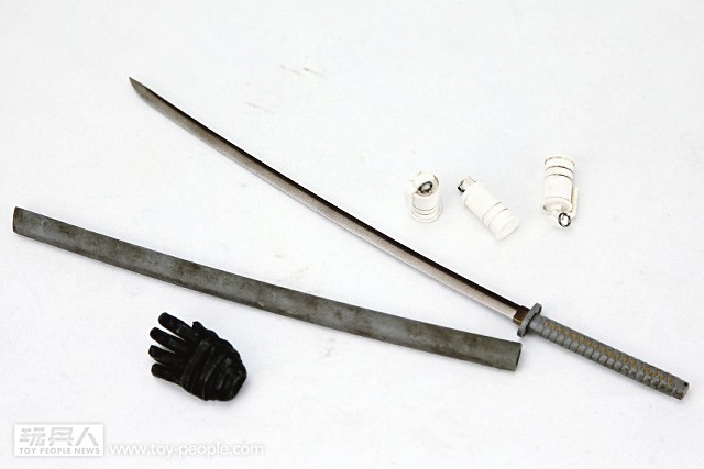 ▼ 「忍者TK」的配件包含了一個替換手、三個純白手榴彈、以及與過往TK 所手持的刀截然不同的超大把武士刀。值得一提的是,武士刀的刀柄細節呈現超棒的,深灰色的刀柄上有著金黃色的刻線。
