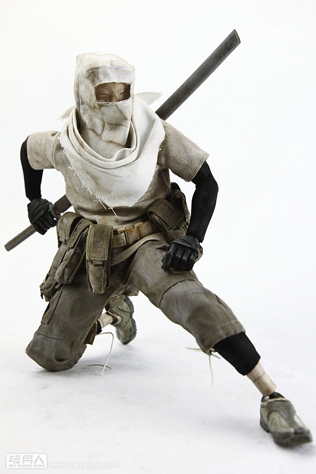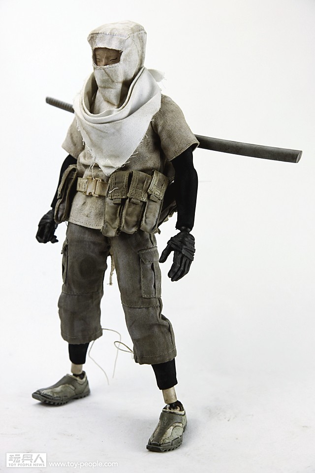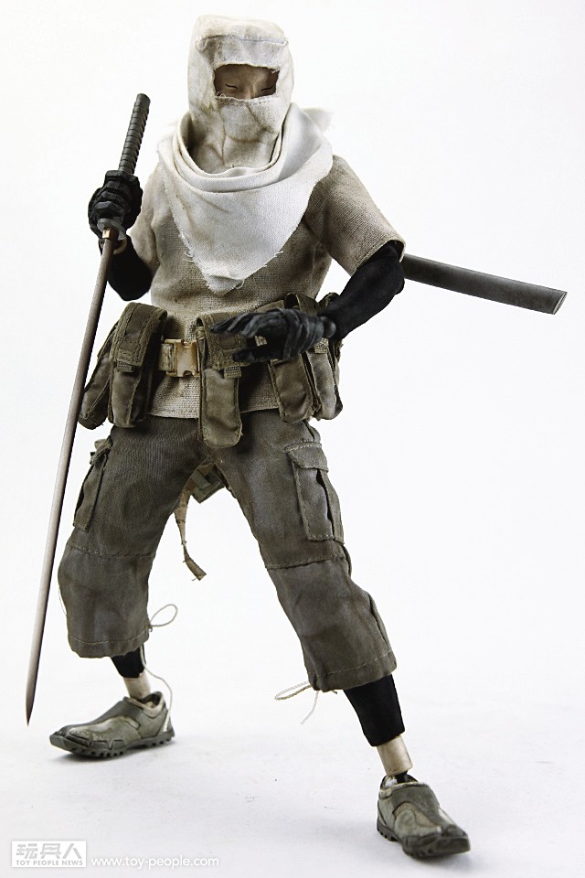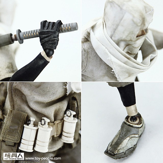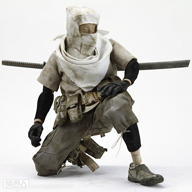 ▼ 「ICHIHITO UNDERVERSE NINJA TK」忍者TK 現身啦!身穿夜行衣,搭配著麻布質感的外衣、白色的頭套與白色麻布質感的三角領巾,身後背著一大把超帥氣的武士刀。