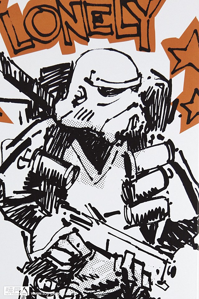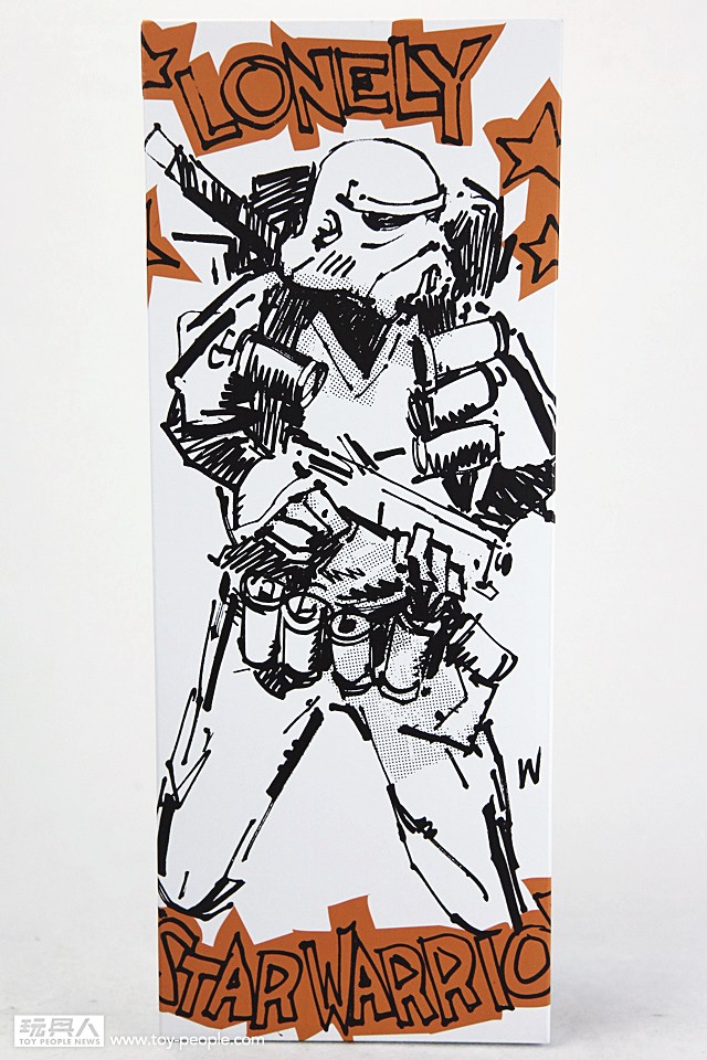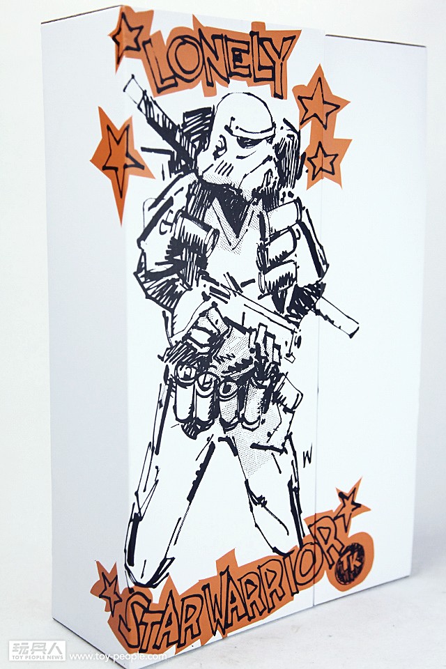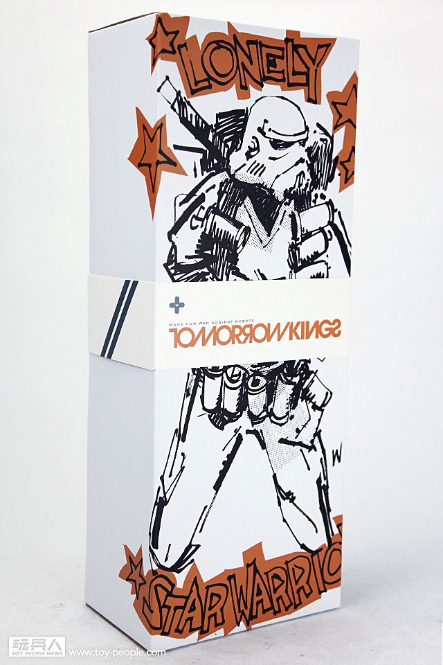 ▼ 「LONELY STAR WARRIOR TK」的包裝盒正面,由設計師Ashley Wood 繪製的LONELY STAR WARRIOR TK 圖案。頭盔、武士刀、手榴彈搭配著一把槍。與過往設計的TK 風格差很大啊!不過小編超期待這組TK 作品的。