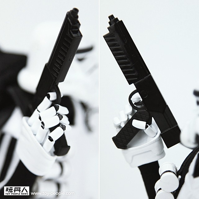 ▼ 專屬於「LONELY STAR WARRIOR TK」的槍枝武器,這可是第一款有拿槍的TK 喔!除此之外,從照片中也可以看到threeA 這次在處理手部可動手掌的用心,關節與關節之間黑色的塗裝,與整體黑色、白色的造型相互呼應。