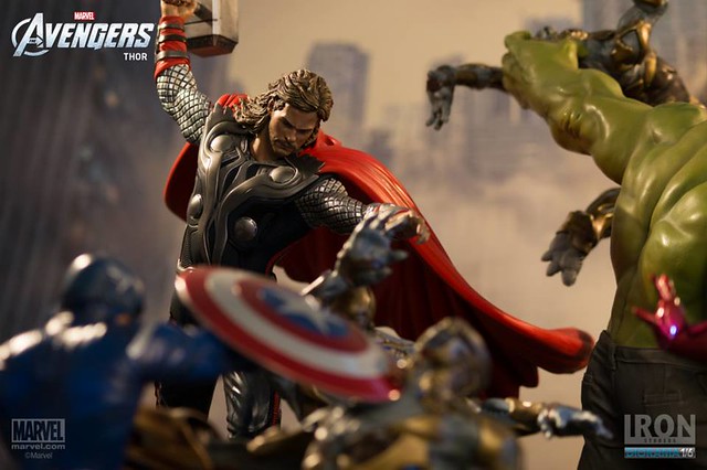 先前我們曾經為大家介紹過巴西的新銳玩具公司Iron Studio所計畫推出的復仇者聯盟戰鬥場景雕像。這款作品分別精彩立體化了各位英雄的戰鬥英姿,但又巧妙設計可以組合成一體,構圖上非常有戲劇張力,十分令人期待!目前官方粉絲團已經公佈了「美國隊長」、「浩克」以及「鋼鐵人」戰鬥場景,近日又再公佈了雷神索爾的塗裝完成品情報圖。高舉雷神之鎚的索爾正準備展現無窮神力,重現電影裡的經典動作。角色相貌有十分傳神的高水準。雷神之鎚的作工相當細緻,金屬材質也十分逼真有重量感,非常推薦給各位漫迷入手喔!本作品以1/6比例製成,目前尚未有任何販售資訊,有興趣的朋友可以到官方粉絲團:https://www.facebook.com/ironstudios按讚喔!