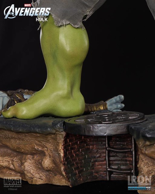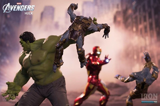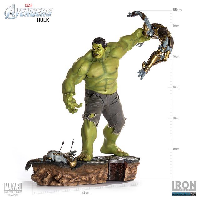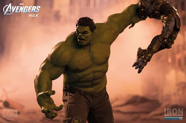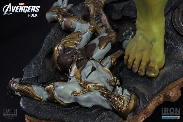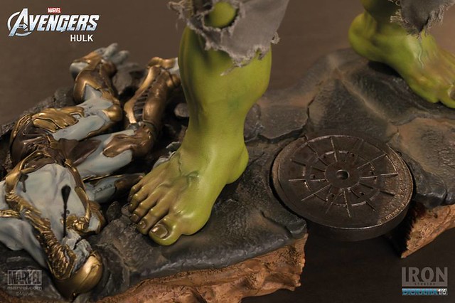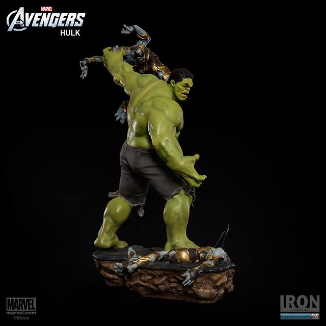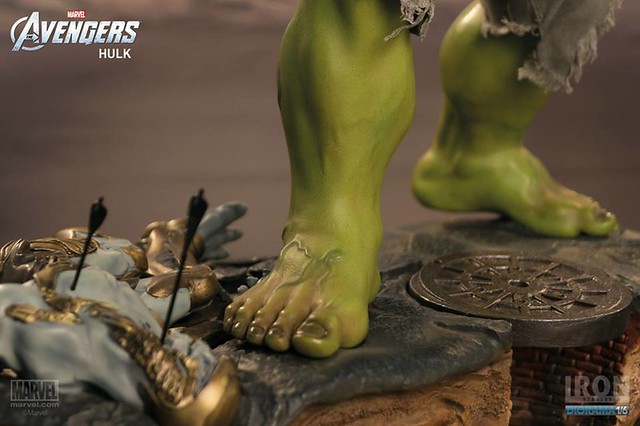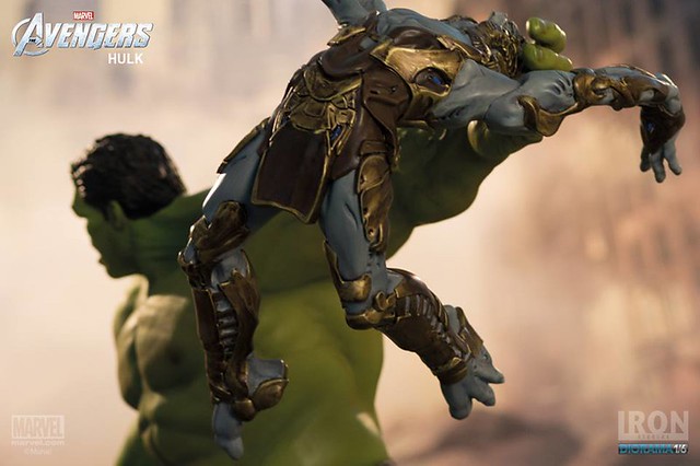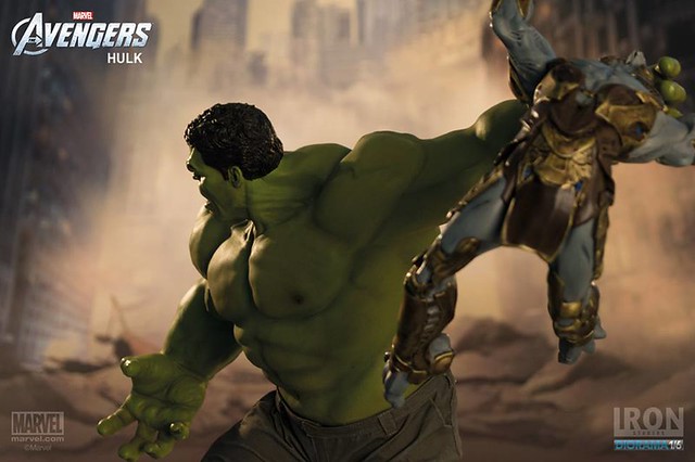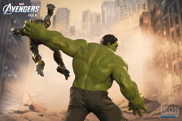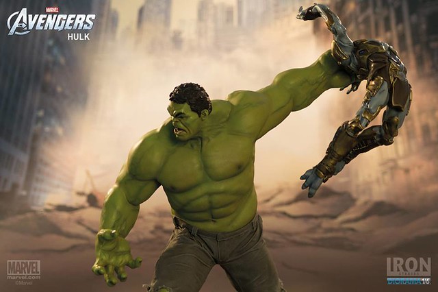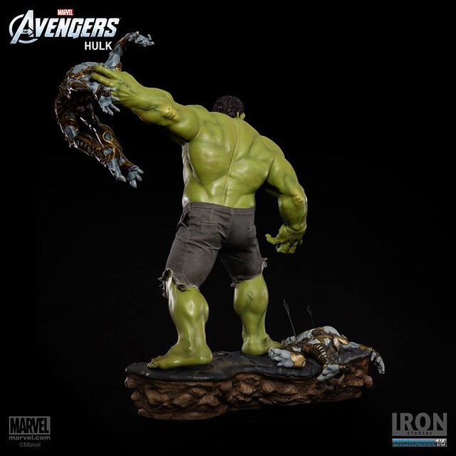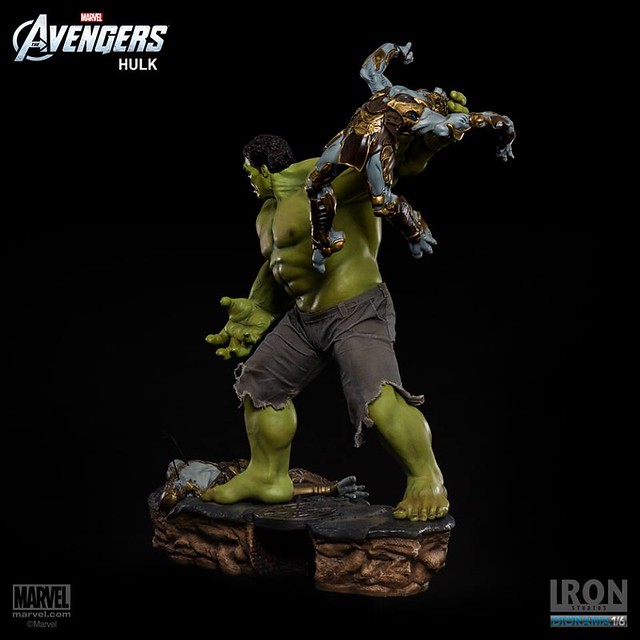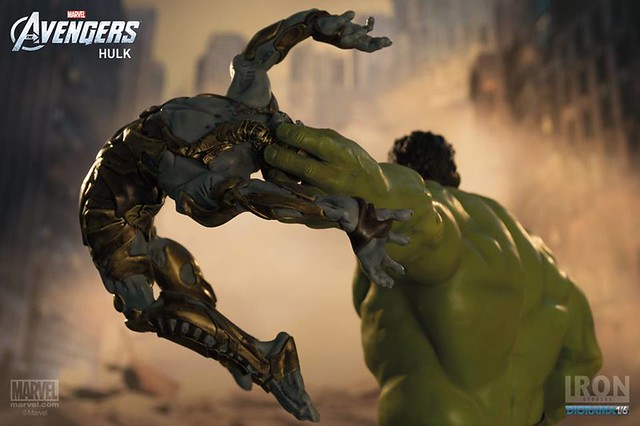 巴西新銳玩具公司Iron Studio精心傑作「復仇者聯盟戰鬥場景雕像」,日前已經公佈了無敵浩克的戰鬥英姿。看過電影的朋友都知道這集浩克最搶鏡了,力大無窮的戰鬥型態能輕易把敵人像玩偶一樣蹂躪,本作品就安排了兩隻奇瑞塔步兵,一隻被踩扁深陷地面中,另一隻則被輕鬆抓起,拋物線的身型更顯得浩克的驚人怪力!本作品高約21.5英吋,美金售價約400美元左右,提供給大家參考喔!