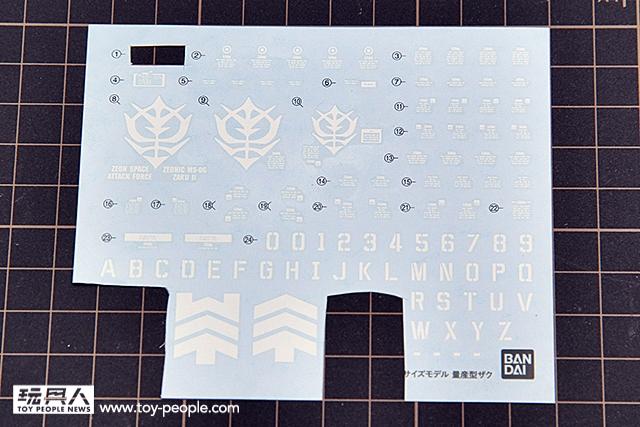 ▼ 另一種方式,則是在BANDAI的模型中,有許多套件也會附上機體專用的水貼。例如,這款Mega SIZE 的量產型薩克就有附上一張有吉翁軍徽章跟階級章的水貼,各位玩具人也可以用這類的水貼,來完成你的“上校”夢。
