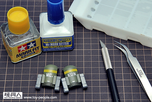 ▼ 在此,我們再次確認一下,貼水貼時需要的工具。在這些工具中,等等要大顯神威的就是筆刀。建議各位玩具人讓你的筆刀保持鋒利的狀態,刀鋒越利,操作起來就會越得心應手。當然更要注意手指的安全,畢竟刀不長眼。