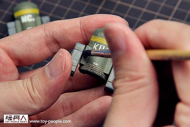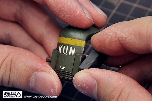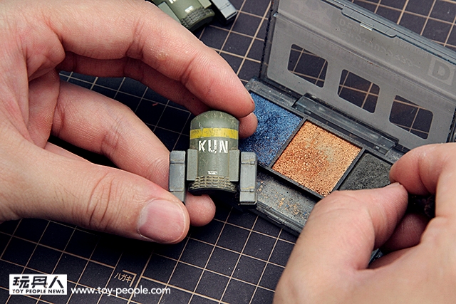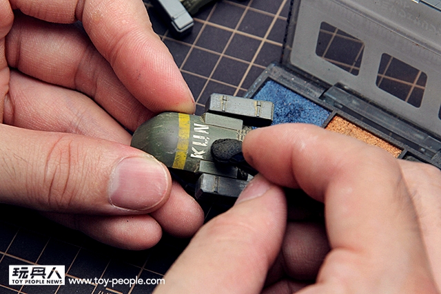 ▼ 而針對小零件的舊化,我們要避免大面積的塗洗,只需要沿著溝痕畫出較細的線條,營造出生鏽水流過的質感。一方面是可以避免塑膠的劣化,另一方面也比較寫實。