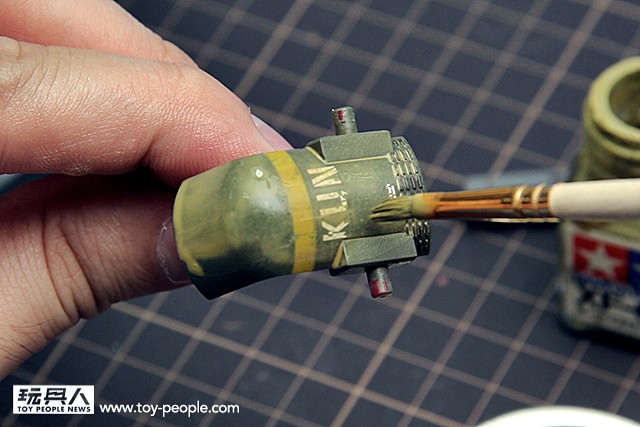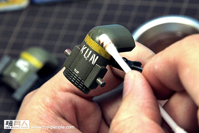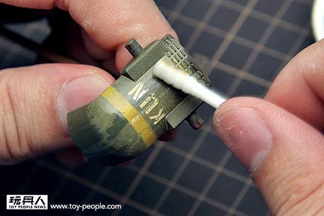 ▼ 洗漬過後,還是需要用棉花棒沾上少許X-20溶劑擦拭。因為畫筆的面積較大,可能會連我們沒有想要洗漬的區域都會畫到,同時我們也可以對洗漬的範圍進行調整修飾。