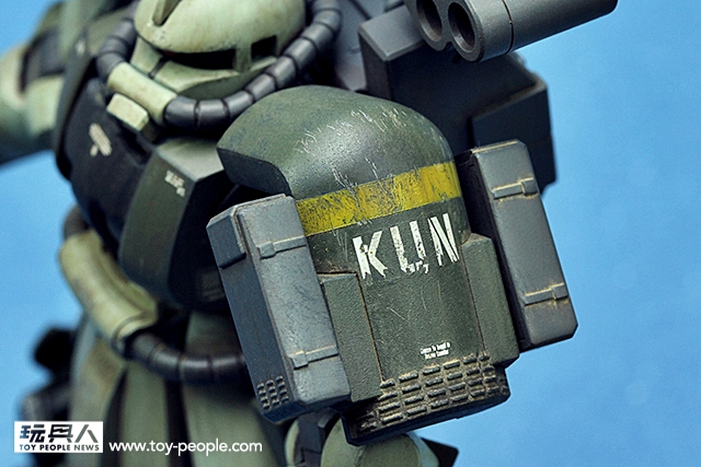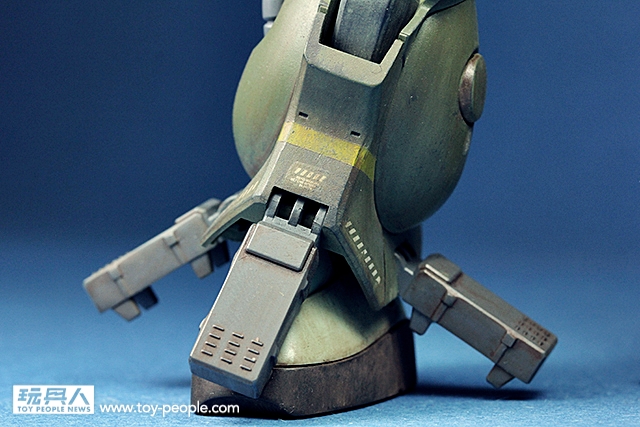 ▼ 側面近照,薩克的頭部排氣口,真的充滿了趣味性!而經過三段式舊化的肩甲,更是這台薩克的價值所在。