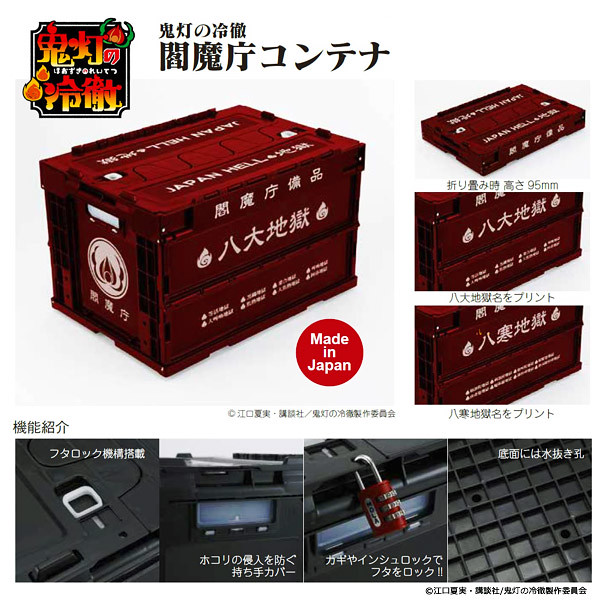 這款可折疊式收納箱設計真是大人氣,不僅堅固、可折疊等實用機能,而且與許多人氣動漫合作推出特別式樣大受歡迎~!近日又公開與搞笑漫畫「鬼灯的冷澈」合作款,鮮紅的外觀,配上八寒地獄字樣,放在房間裡真的會嚇壞老媽喔!建議入手前千萬跟家裡先溝通過啊!本商品可收納尺寸約49.3 X 33.5 X 30.3 公分(外觀尺寸:53 ×36.6×33.4 公分),售價約6500日圓(未稅價),預計2014年10月推出,提供大家參考喔!
