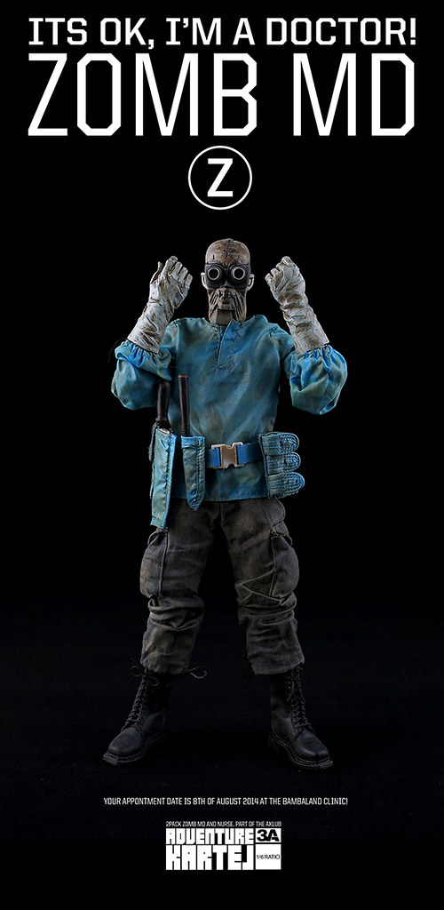 終於終於,繼「AK 俱樂部」(AKLUB)推出前三款的作品:「炒家沒得賺組合包」、「死亡太空黑幫」、「殭屍士兵組」之後,threeA 公司在今天也將第四款的AK 俱樂部作品:「醫療殭屍醫生 & 護士」上架了。這次第四彈所推出的殭屍醫生與殭屍護士的作品可都是設計師Ashley Wood 全新打造的殭屍系列作品啊!天吶~ 那個殭屍醫生的造型怎麼可以這麼帥氣?!而且這次女偶所採用的素體也是全新的素體喔!