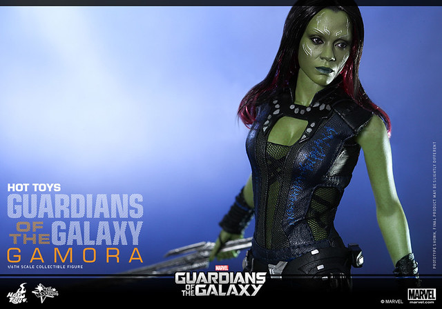在電影中,「葛摩菈」(Gamora)的角色是由柔伊莎達娜(Zoe Saldana)所飾演,儘管全身塗的綠綠的,但這次Hot Toys 所推出的葛摩菈作品還是可以隱隱約約看出柔伊莎達娜的神韻,小編心中也在納悶阿凡達中的Neytiri 是不是也準備要推出了呢?!誤~~