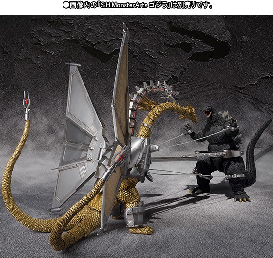 2014年8月21日新增官網宣傳照片,S.H.MonsterArts 機械帝王基多拉 附有ドラット×3、捕獲マシンハンド一式和專用台座等等配件,尺寸高約有25公分,售價約19,440元日幣,提供給喜歡S.H.MonsterArts 特攝可動系列的玩具人參考。