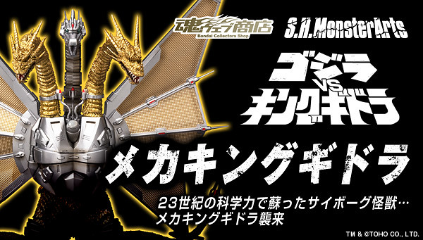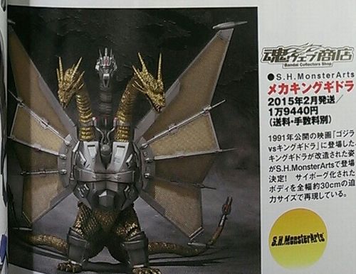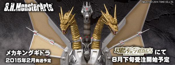 日Bandai萬代玩具公司的S.H.MonsterArts 特攝可動系列預計2015年2月推出S.H.MonsterArts メカキングギドラ 機械帝王基多拉(暫時翻譯),登場於ゴジラvsキングギドラ(哥吉拉vs王者基多拉)是1991年12月上映的日本特攝電影,哥吉拉系列電影的第18部作品,也是東寶創立60周年的記念作品,在台灣上映時片名取為「六度空間大水怪」,目前官網公開了販售資訊,將在魂web線上商店於2014年8月22日接受訂購。