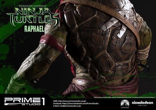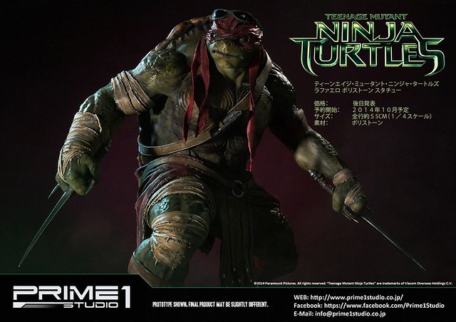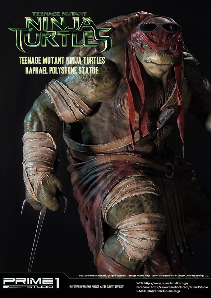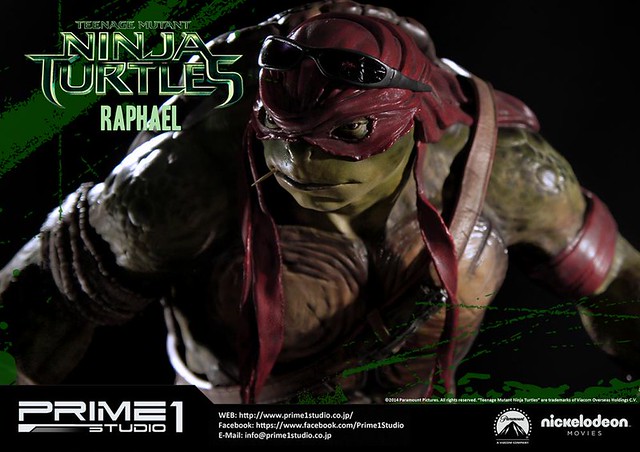 去年成立,以複雜造型、精美塗裝(與高貴價格)的電影版《變形金剛》威震玩具收藏界的日本造型公司“Prime 1 Studio”,宣布取得了《忍者龜:變種世代》版權,將推出一系列的忍者龜角色雕像,首波作品將推出個性衝動火爆、作風兇狠的紅色忍者龜「拉斐爾」(Raphael)。