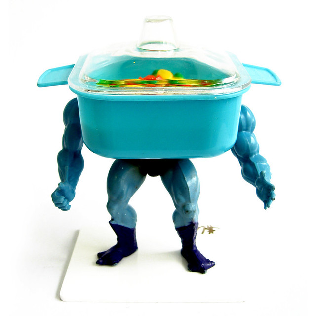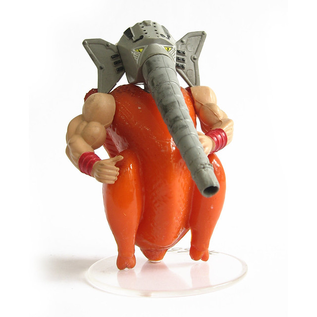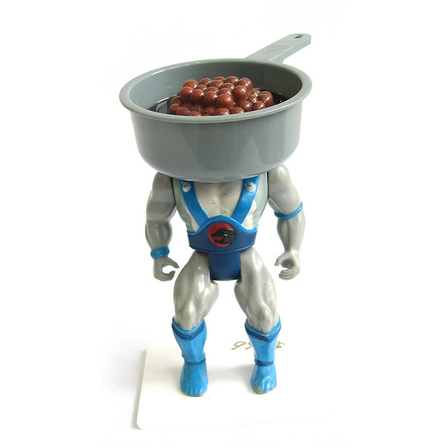 來自SUCKHOLE 3 studio將之前推出的He-man太空超人、Thunder cats霹靂貓和Teenage Mutant Ninja Turt忍者龜等等6吋的Action figures,改裝加上玩具食物或是食物容器呈現不太一樣的有趣設計師玩具,像照片這樣把霹靂貓的頭加上熱狗玩具等等,現正於SUCKHOLE 3 studio官網販售,不過全部都已經被有興趣的玩具人訂走了,更多SUCKHOLE 3 studio改裝Action figures可以前往下方出處連結參考。