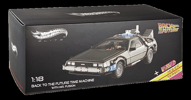 這一款《回到未來2》時光車 with Mr. Fusion.採用了《回到未來2》中,布朗博士駕駛時光車到未來(2015年)所改裝之後的版本,這一台時光車最大的特徵,在於車身後方裝上能夠藉由家庭垃圾獲得核融合發電的裝置“Mr. Fusion.”。以及大量的未來改裝。藉由圖片我們能看到『Hot Wheels Elite』精緻地重現了大量複雜的元素,除此之外,還相當應景地附贈了一款1:18 比例的未來滑板 - “盤旋板(Hoverboard)”。