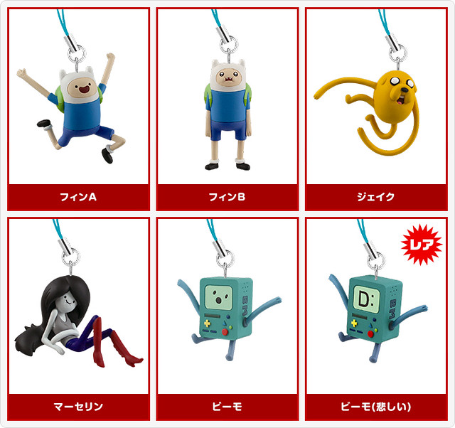 TakaraTomy 將在本月底推出《探險活寶》角色吊飾系列轉蛋(アドベンチャー・タイム フィギュアストラップ),將收錄4位人氣角色6 種款式,重現獨特又可愛的《探險活寶》世界觀!~全套一共將收錄5+1稀有隱藏版,一共6種款式,分別為「阿寶A」「阿寶B」「老皮」「艾薇爾(瑪瑟琳)」「嗶莫」「【稀有隱藏版】嗶莫(悲傷)」