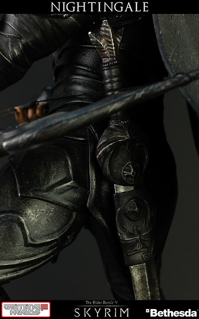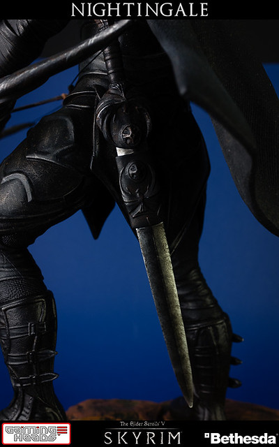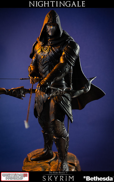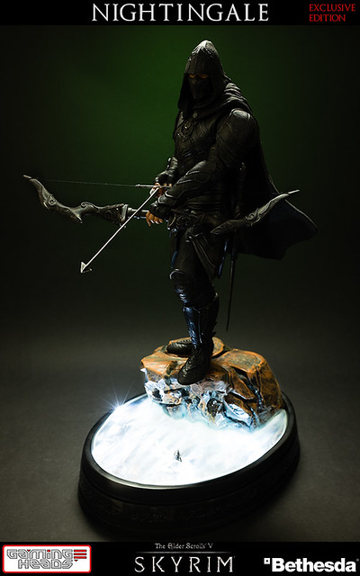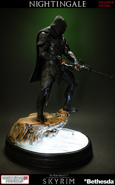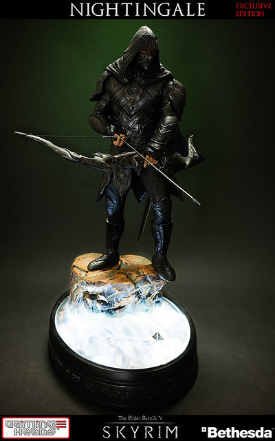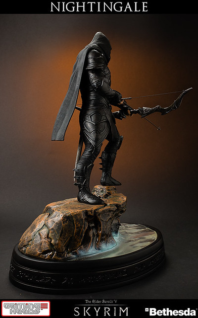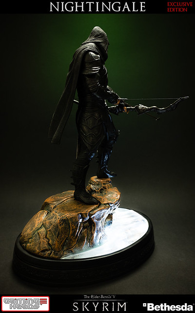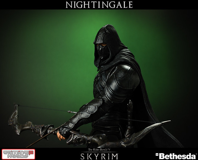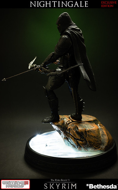 擅長電玩遊戲作品開發的GAMING HEADS,繼上古捲軸V的龍裔雕像後再推出傳說中的盜賊「夜鶯」雕像。夜鶯是傳說中的盜賊菁英,神秘到讓人懷疑他們是否真的存在。本作品重現遊戲中的夜鶯套裝,雖然全身神秘的黑色卻不單調,設計非常細緻有層次感。手持弓箭、腰際配劍都不馬虎,作品構圖設計站在流水邊的岩石上,如果您入手限定版,地台還設計會發光,能夠映出流水光影十分有FU!作品以1/6比例製作高約16英吋,美金售價約329.99美元(一般版為299.99美元),預計2015年第一季出貨,提供給大家參考喔!