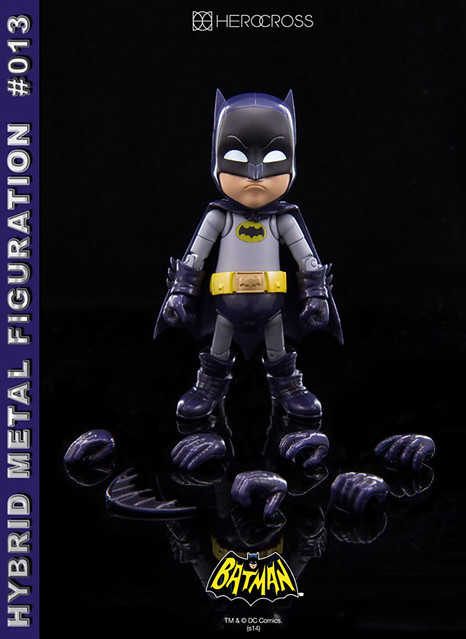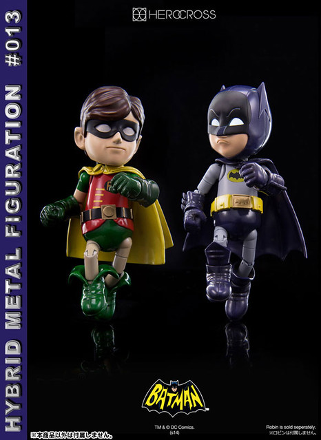 Hero Cross玩具公司的Hybrid Metal Figuration系列預計2015年2月推出#013 Batman 1966 TV Series Batman和#012 Batman 1966 TV Series Robin,編號13號的1966電視版本造型的蝙蝠俠,編號12號的羅賓也是以1966電視版本造型呈現,全身多處關節可動,都附有多款可以替換手掌配件,尺寸各高約有14公分,單個售價約8,800元日幣,喜歡Hybrid Metal Figuration系列的玩具人可以參考一下歐。