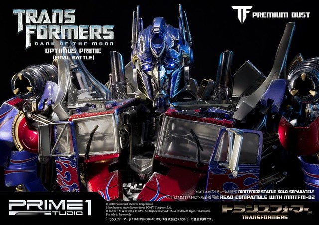 以複雜的造型、大量的細節以及逼真的塗裝,推出一系列電影版《變形金剛》作品而聞名的日本新廠牌“Prime 1 Studio”,將推出《變形金剛3》柯博文胸像,並將推出普通版/最終決戰版兩種款式。這一款作品採用了3D 數位的檔案進行製作,呈現了大量的細節,並且具備了LED 發光機能,眼睛能夠發出藍光。除此之外,這一款胸像的頭雕可取下,與先前曾發行的MMTFM-02 柯博文雕像替換使用。