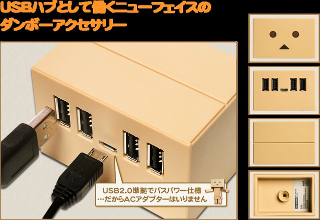 『阿楞 USB HUB』(DANBOARD USB HUB)從產品造型、顏色到包裝,全部由原作的“四葉工作室”(よつばスタジオ) 進行監修。對應USB2.0/1.1,一共有4個插槽。Windows、Mac、Android 皆可使用,除此之外本產品採用Bus Power 設計,所以不需要插電。